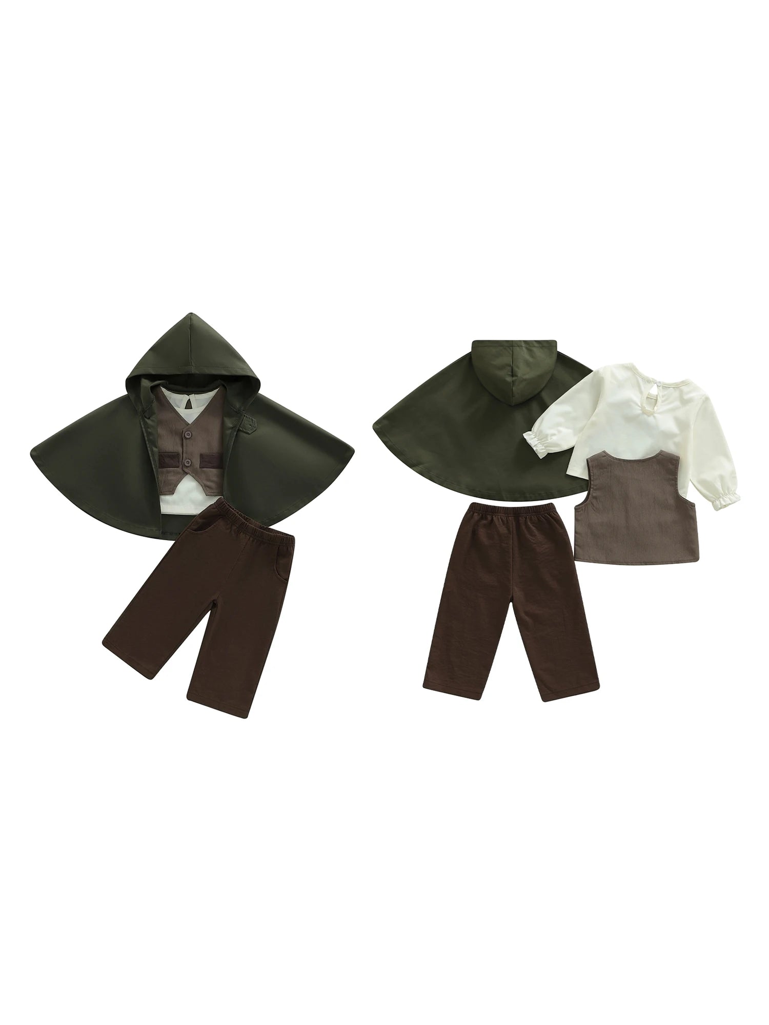 Toddler Boy Fall Outfits Solid Long Sleeve Shirt + Long Pants + Vest + Cape 4 Pcs Gentleman Set