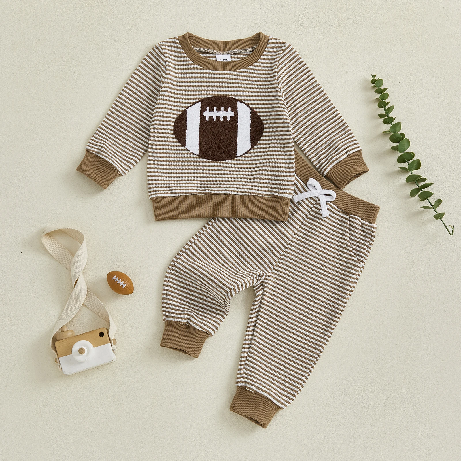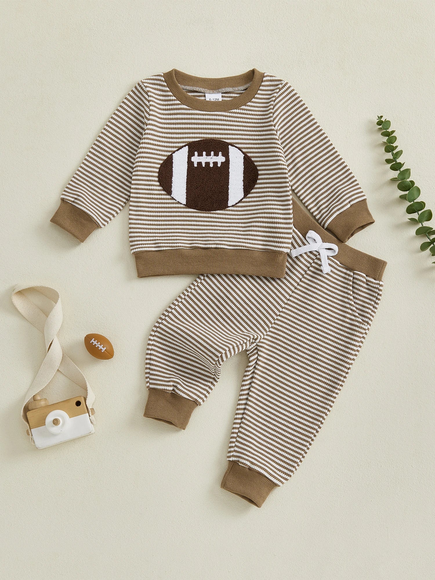 Kids Boys 2-piece Outfit, Long Sleeve Embroidery Rugby Sweatshirt with Striped Sweatpants Fall Outfit