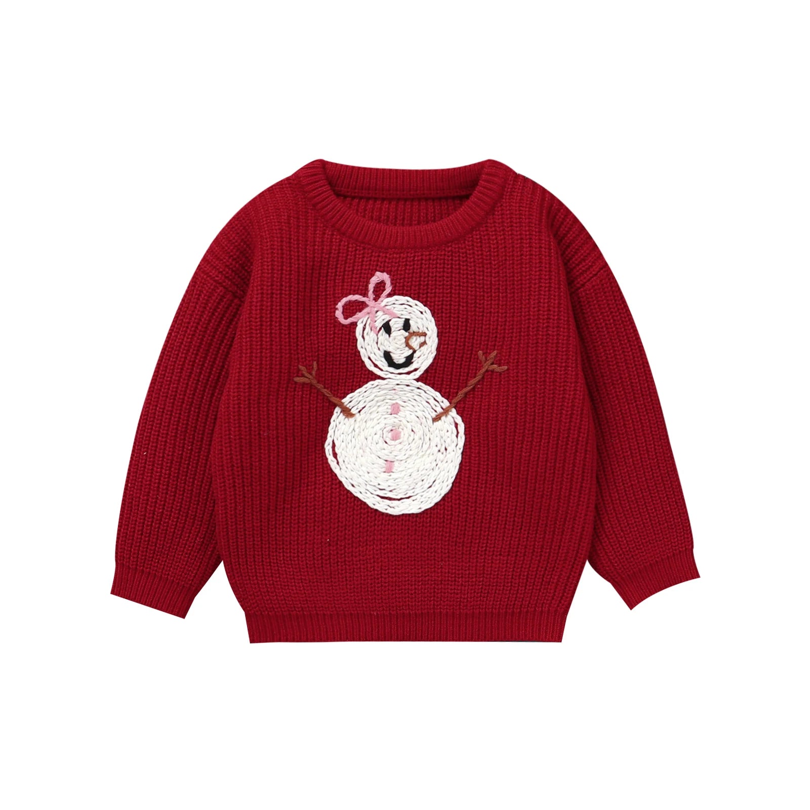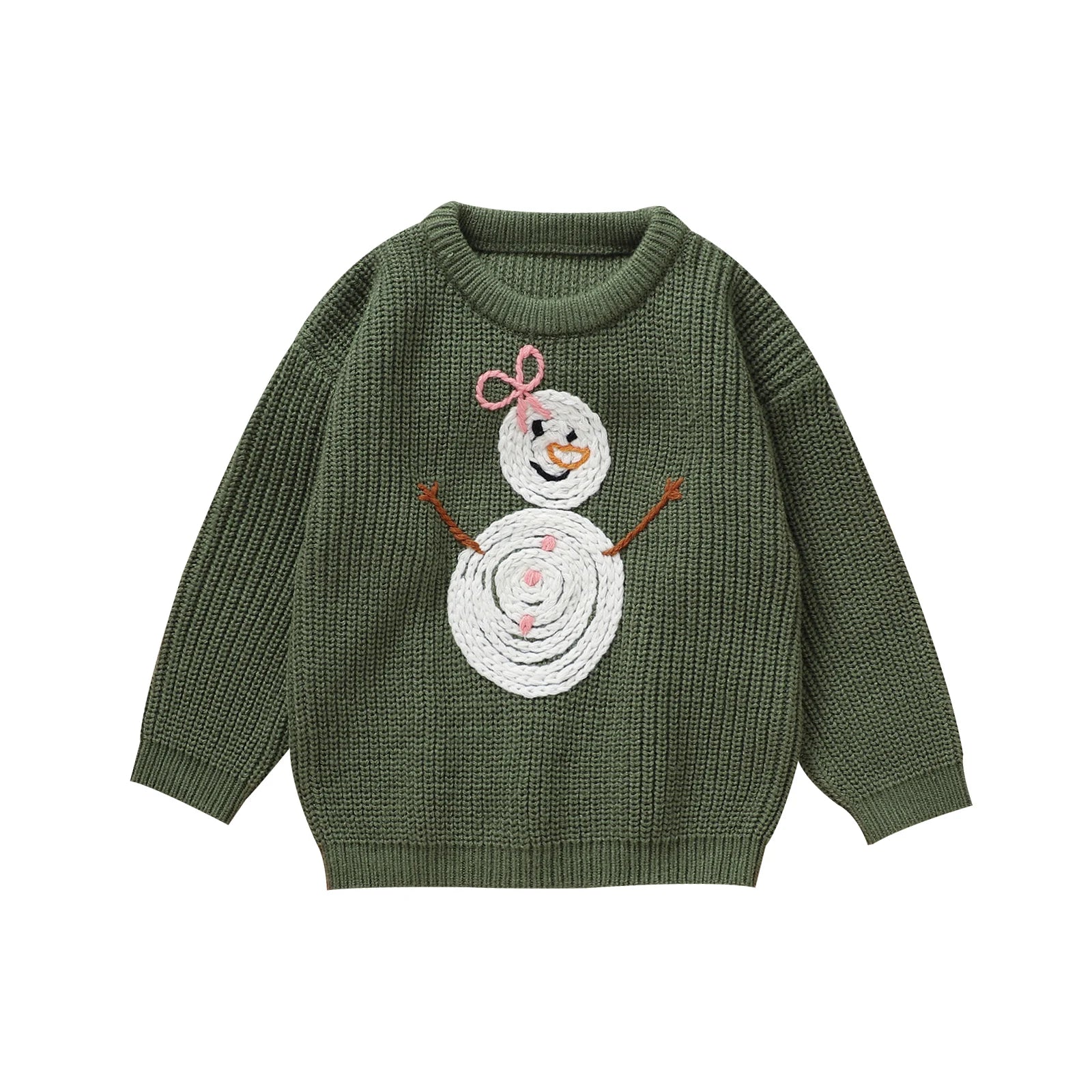 Kids Girls Christmas Sweater, Long Sleeve Crew Neck Snowman Warm Winter Sweater Clothes
