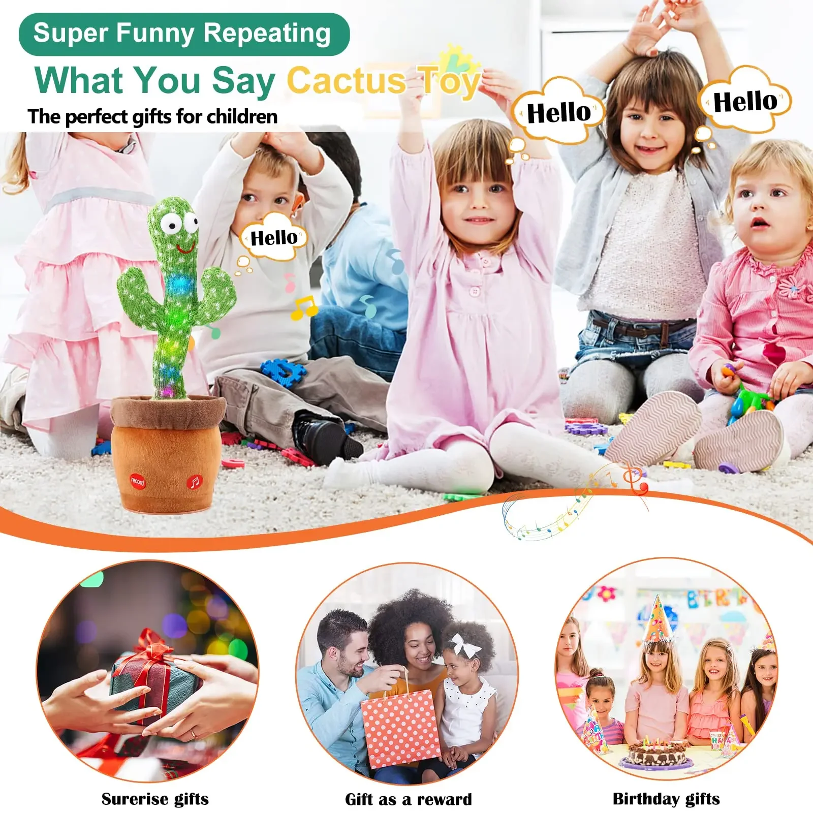 Dancing Talking Cactus Toy Kid Singing Mimicking Repeating Cactus Toy Baby Toddler Boy Girl Gift Recording Voice Interactive Fun