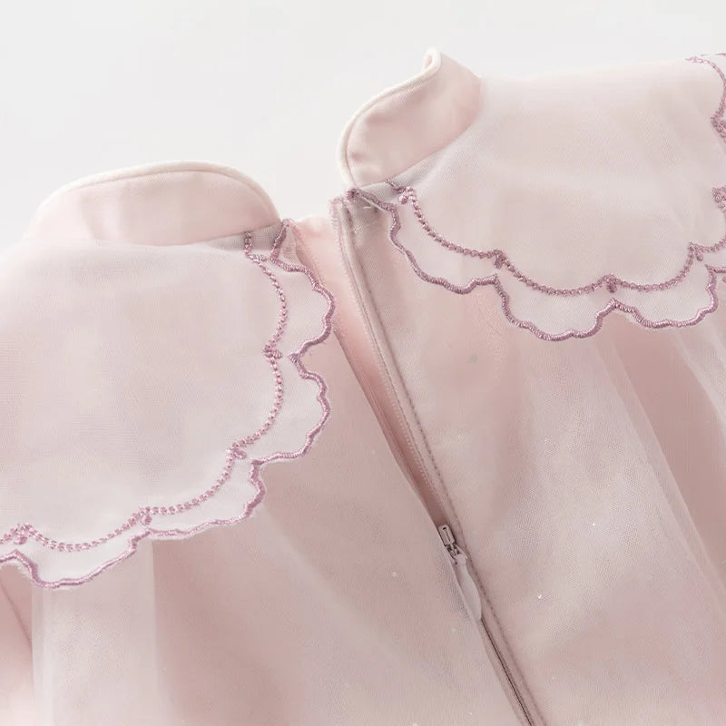 Dave Bella Spring Girl's Dress Cute Mesh Embroidery 2025 New Charm Gentle Cute Children's Princess Dress Party Outdoor DB1250678