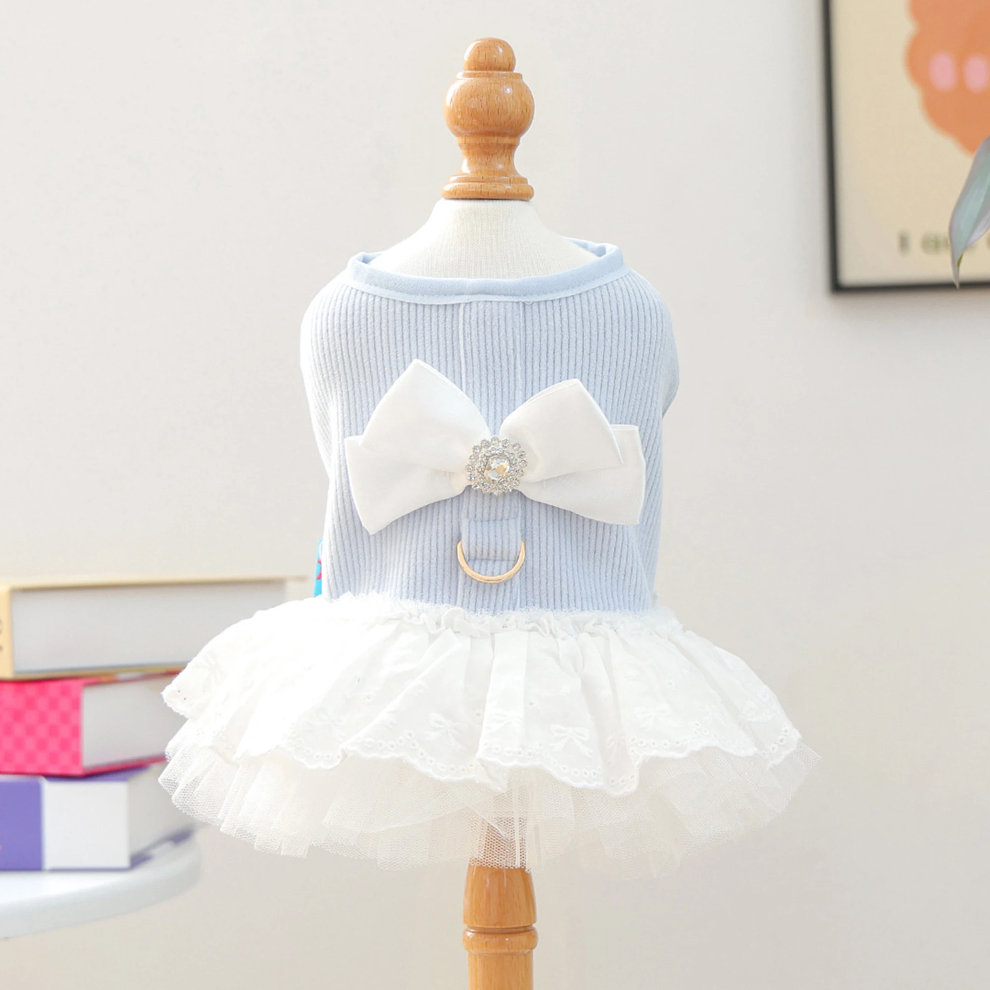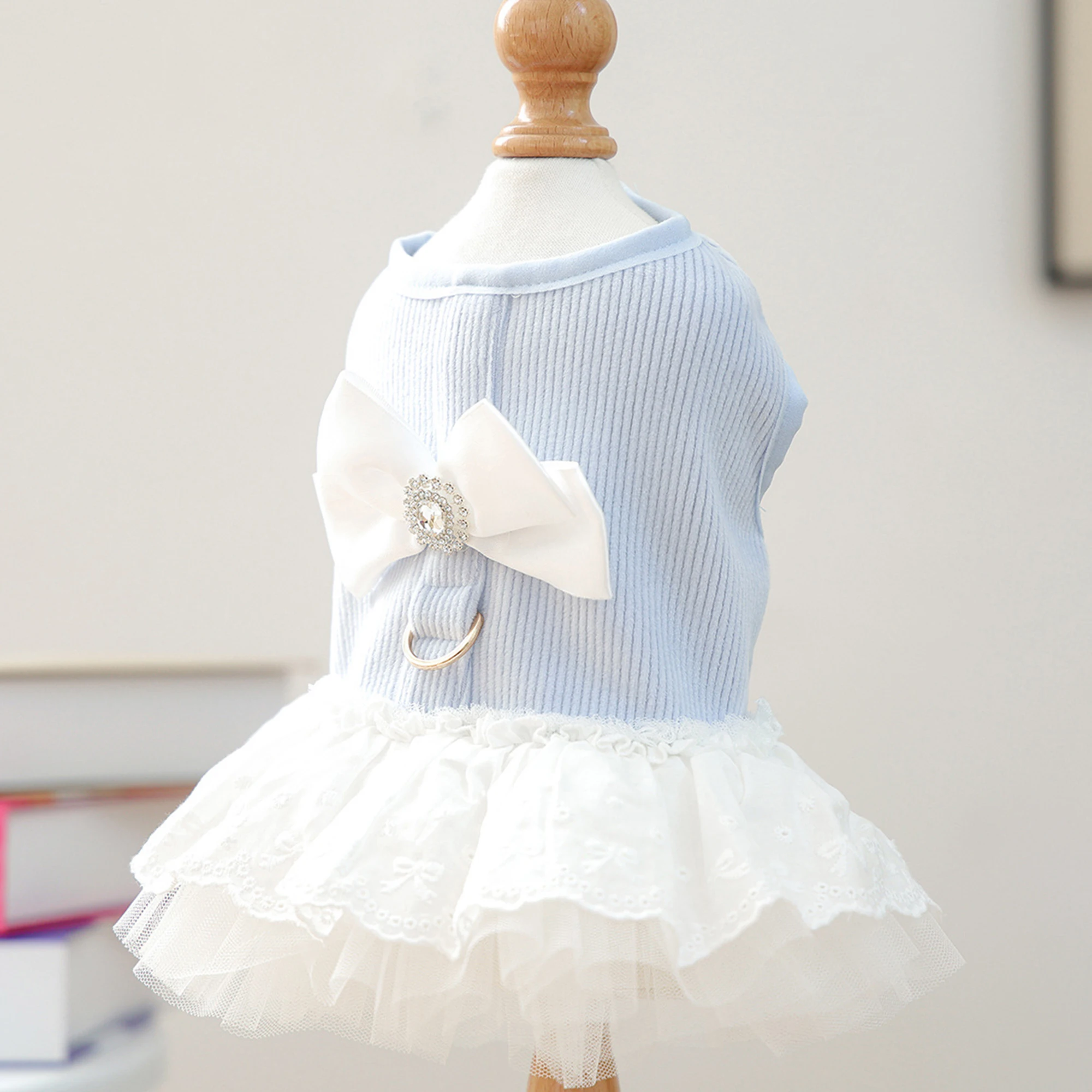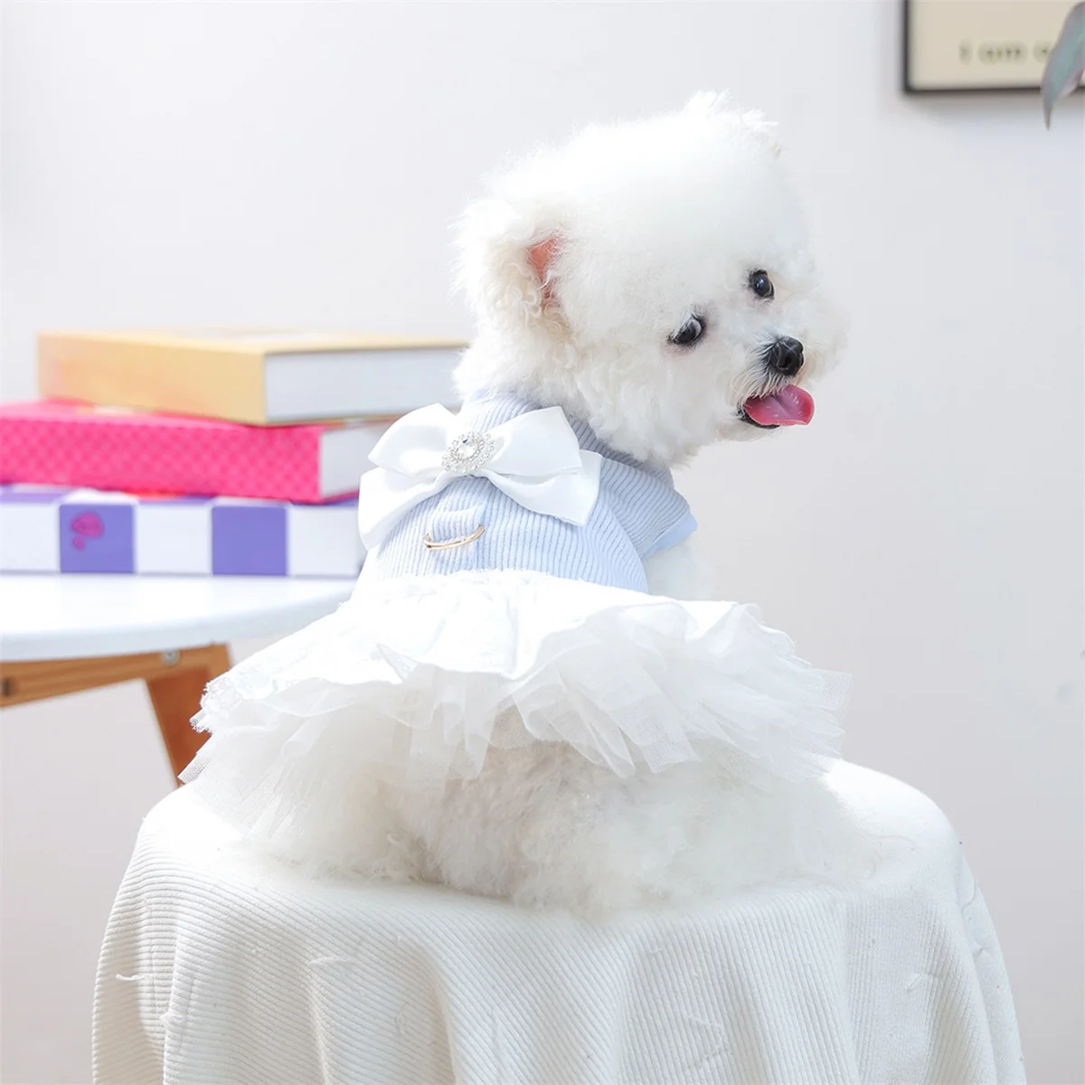 Dog Princess Dress with Bow Puppy Girl Tulle Dress Pet Clothes for Small Dogs Cats
