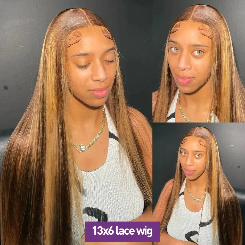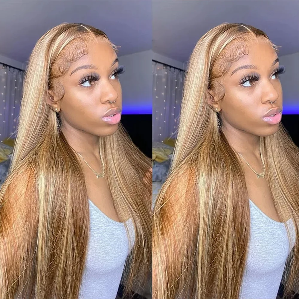 Highlight Wig Human Hair Lace Wig P427 Bone Straight Blonde Ombre Color Brazilian 13X4 Lace Frontal Wigs Pre Plucked For Women