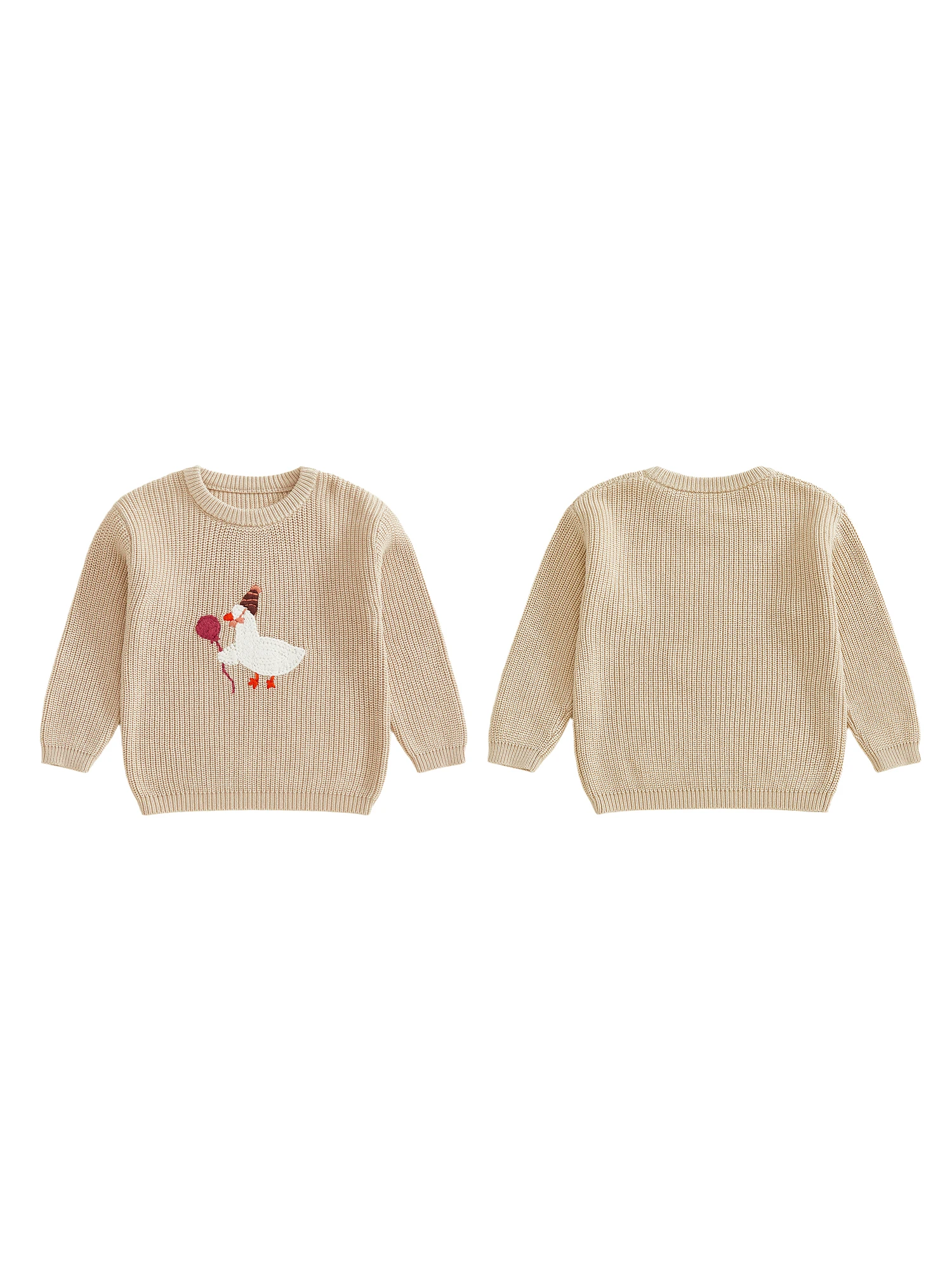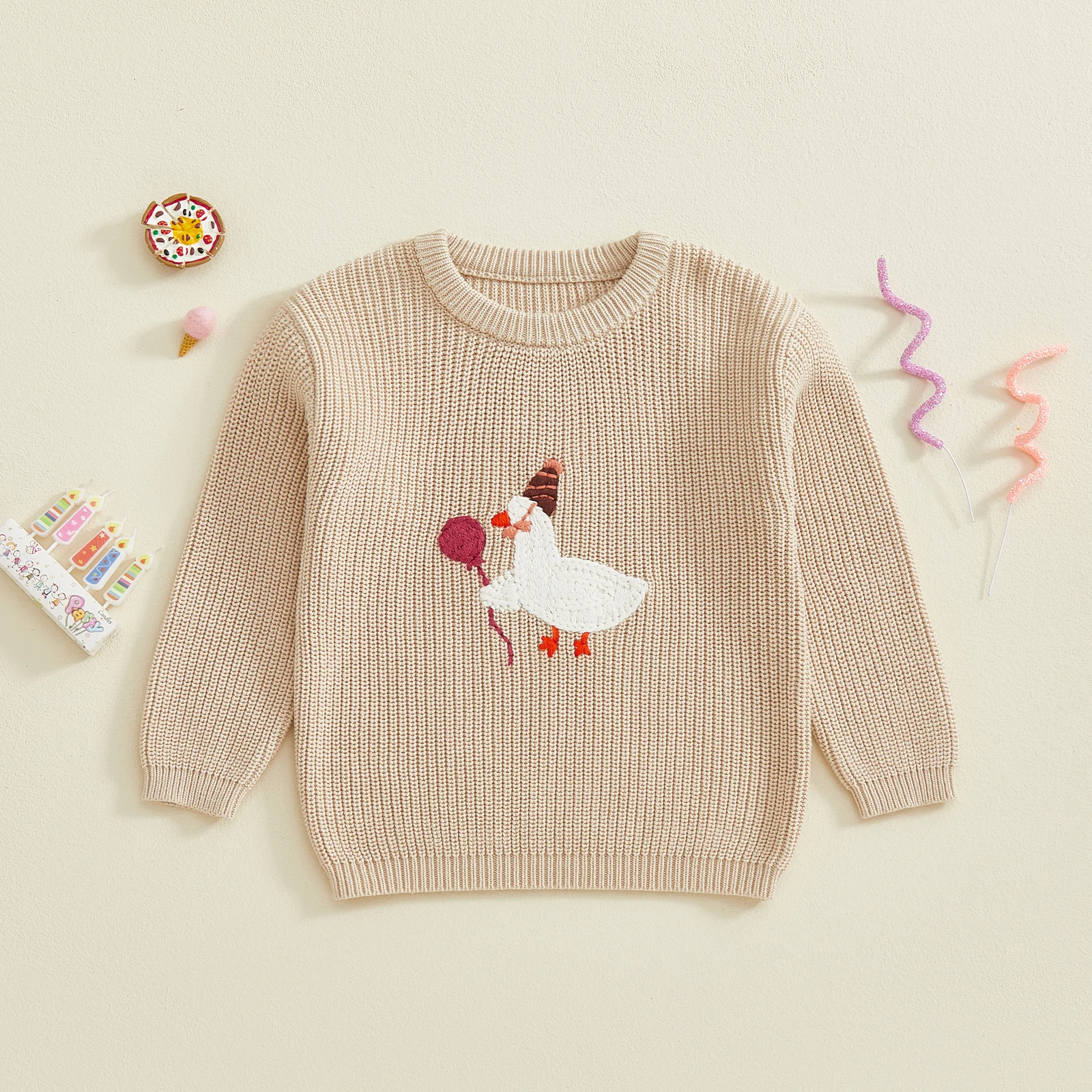 Baby Birthday Sweaters Long Sleeve Round Neck Goose Balloon Embroidery Tops Toddler Sweatshirts