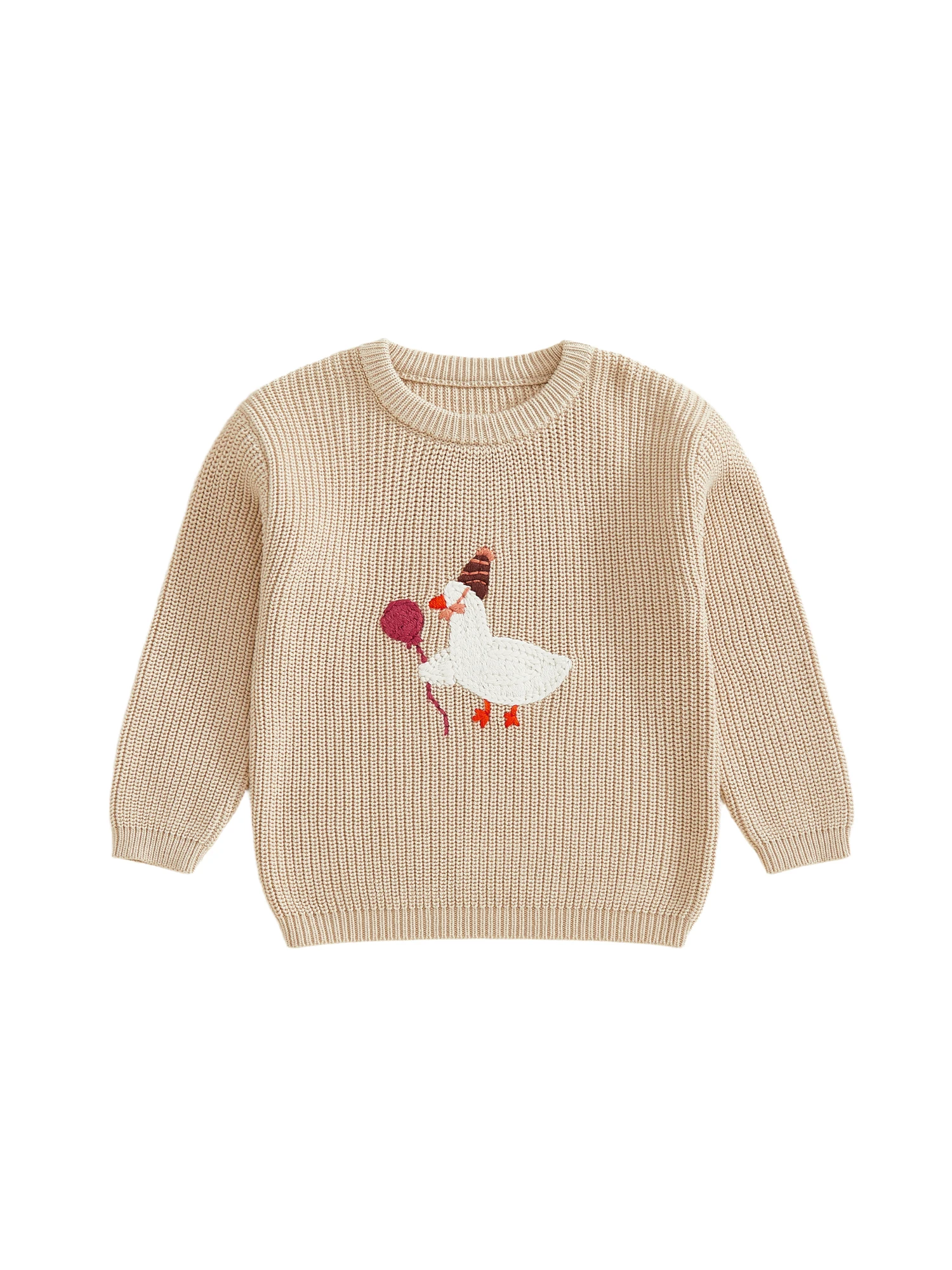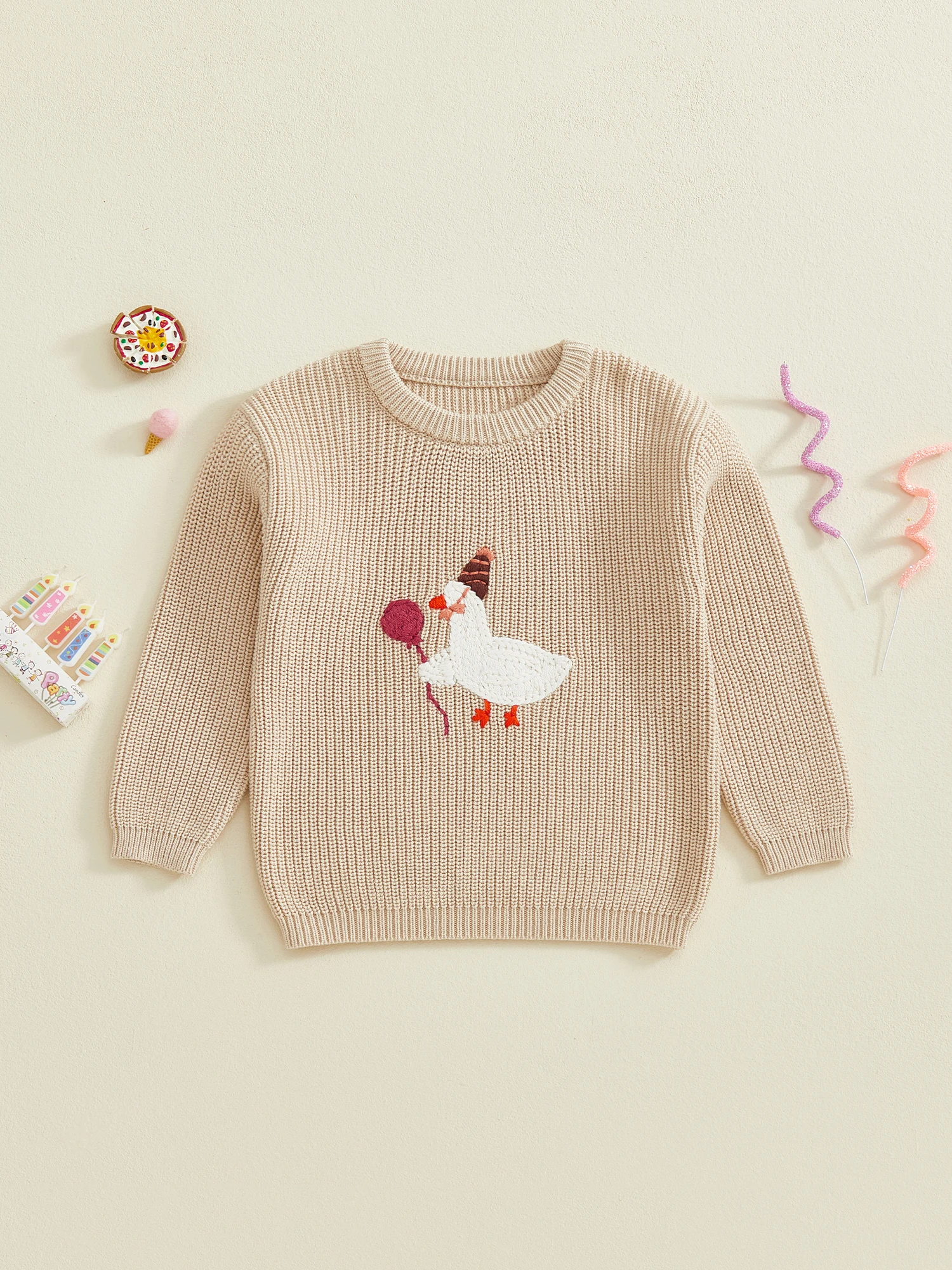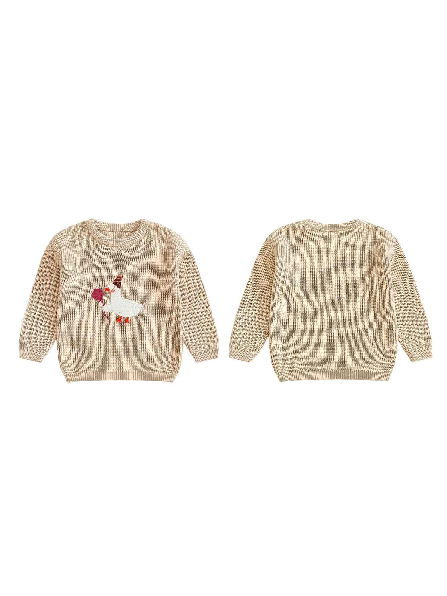 Infant Birthday Pullovers with Long Sleeves and Round Neckline Featuring Adorable Goose Balloon Embroidery - Cute Toddler