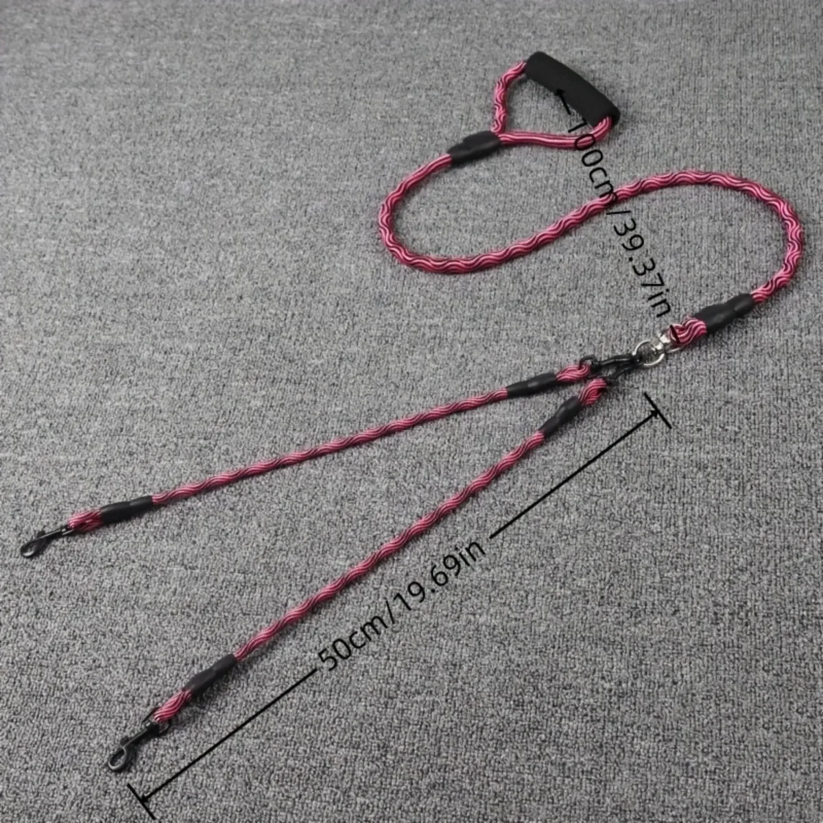 Pet dual head dog walking rope with wavy pattern, one drag two traction rope, anti winding and detachable