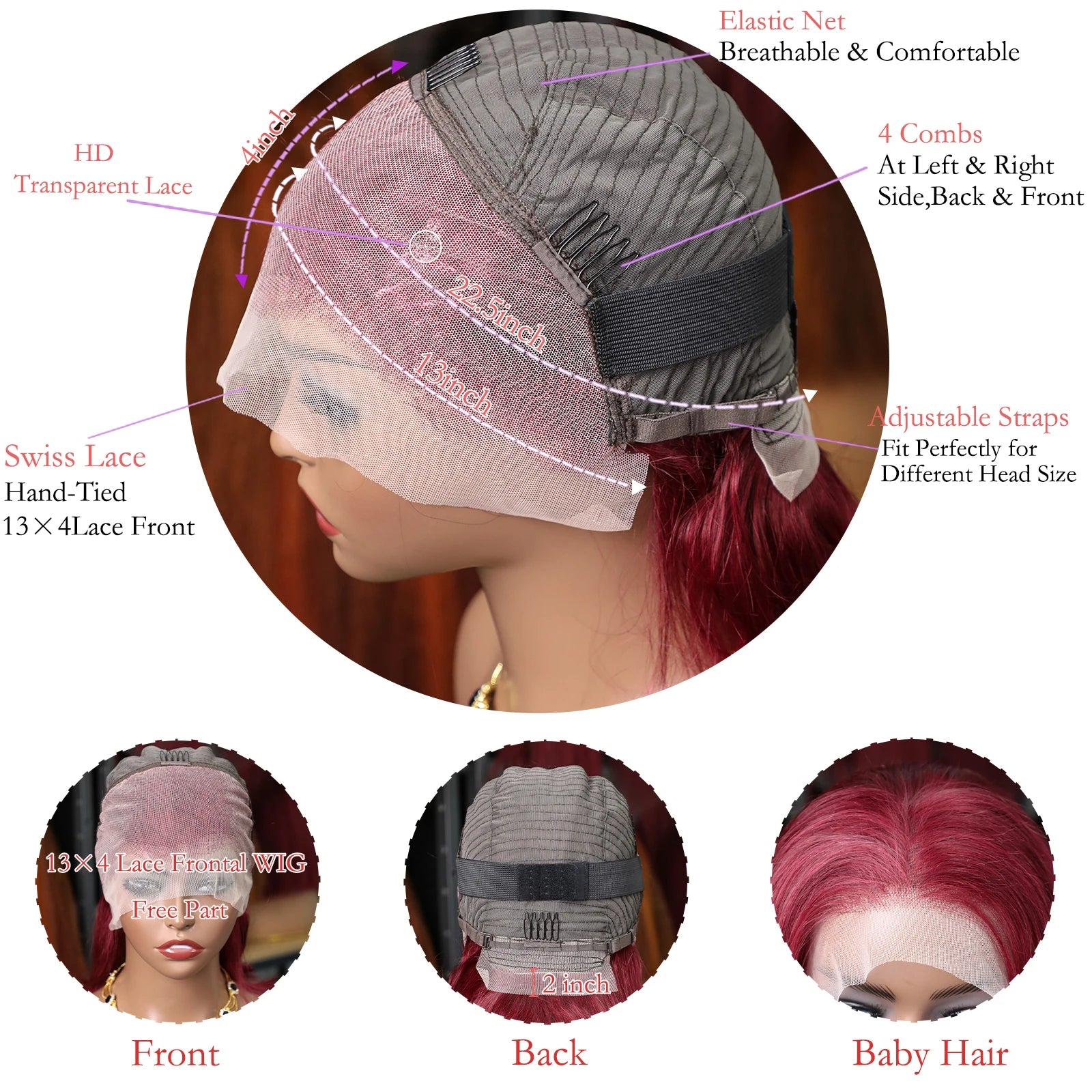 Short Straight Bob Wig Lace Front Human Hair Wigs Ombre Blonde 99J Burgundy Black 13x4 HD Transparent Lace Frontal Wig For Women