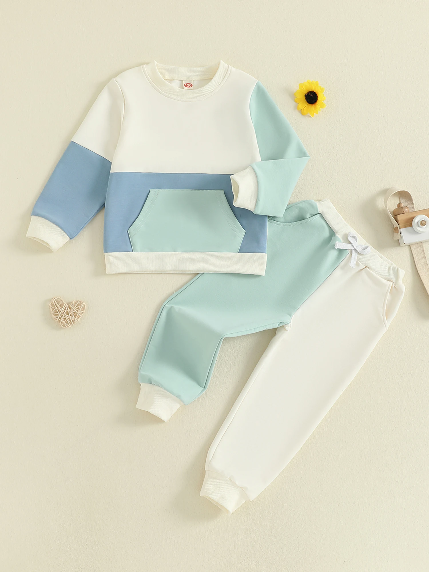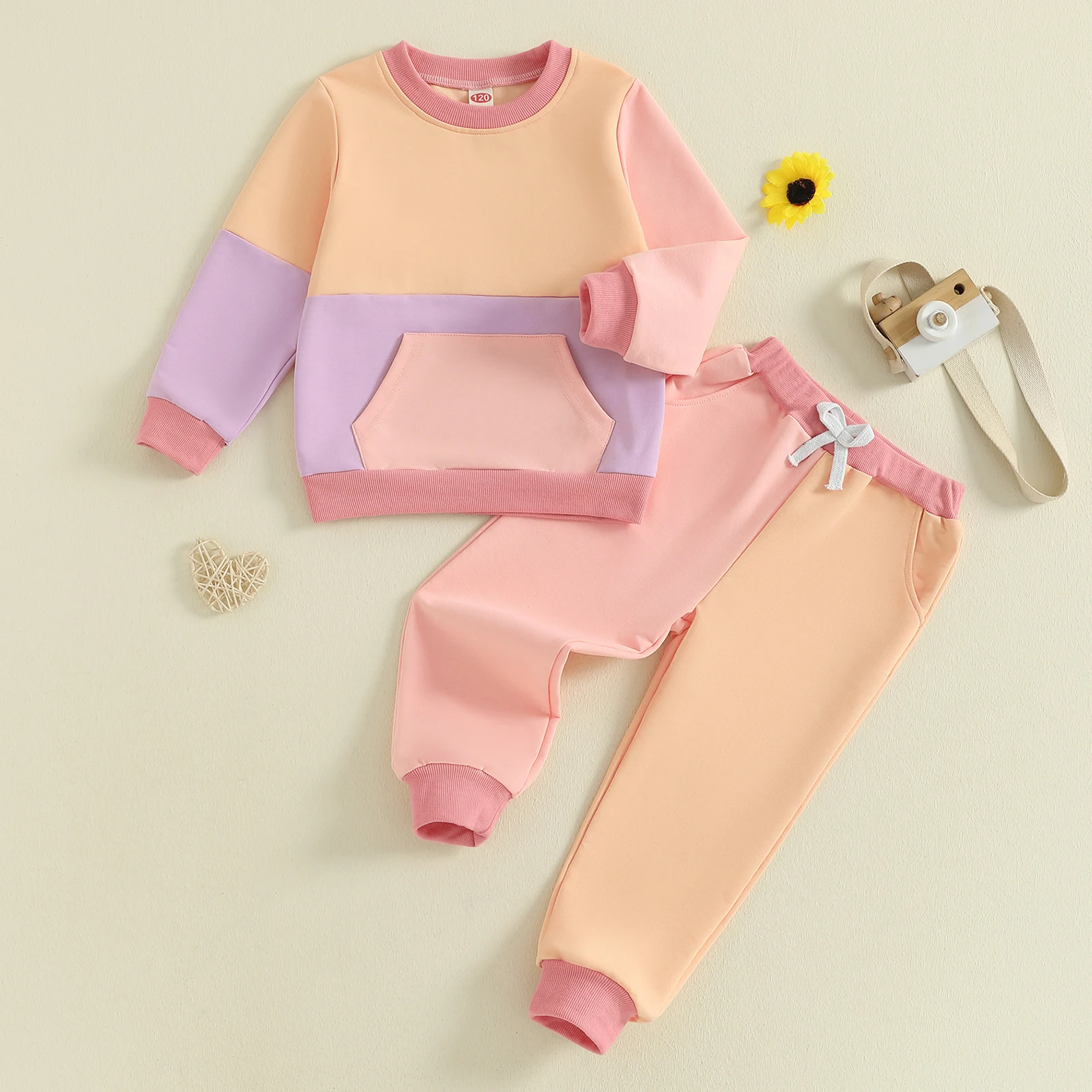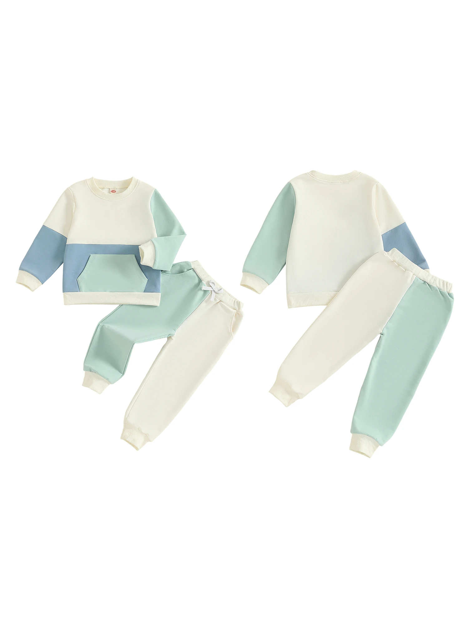 Toddler Baby Clothing Set Fashionable Contrast Color Long Sleeve Pullover with Pants 2 Pcs Fall Outfit