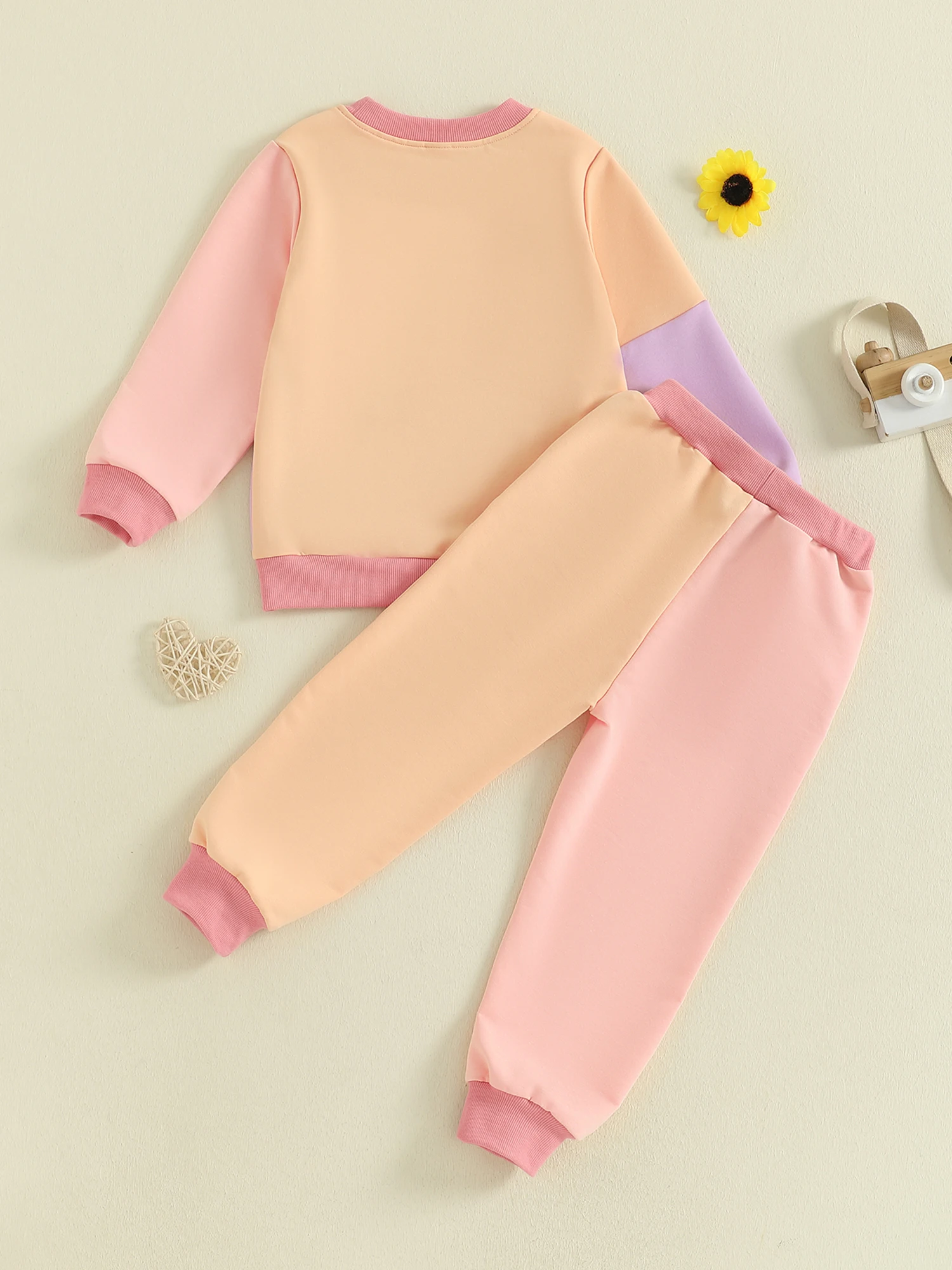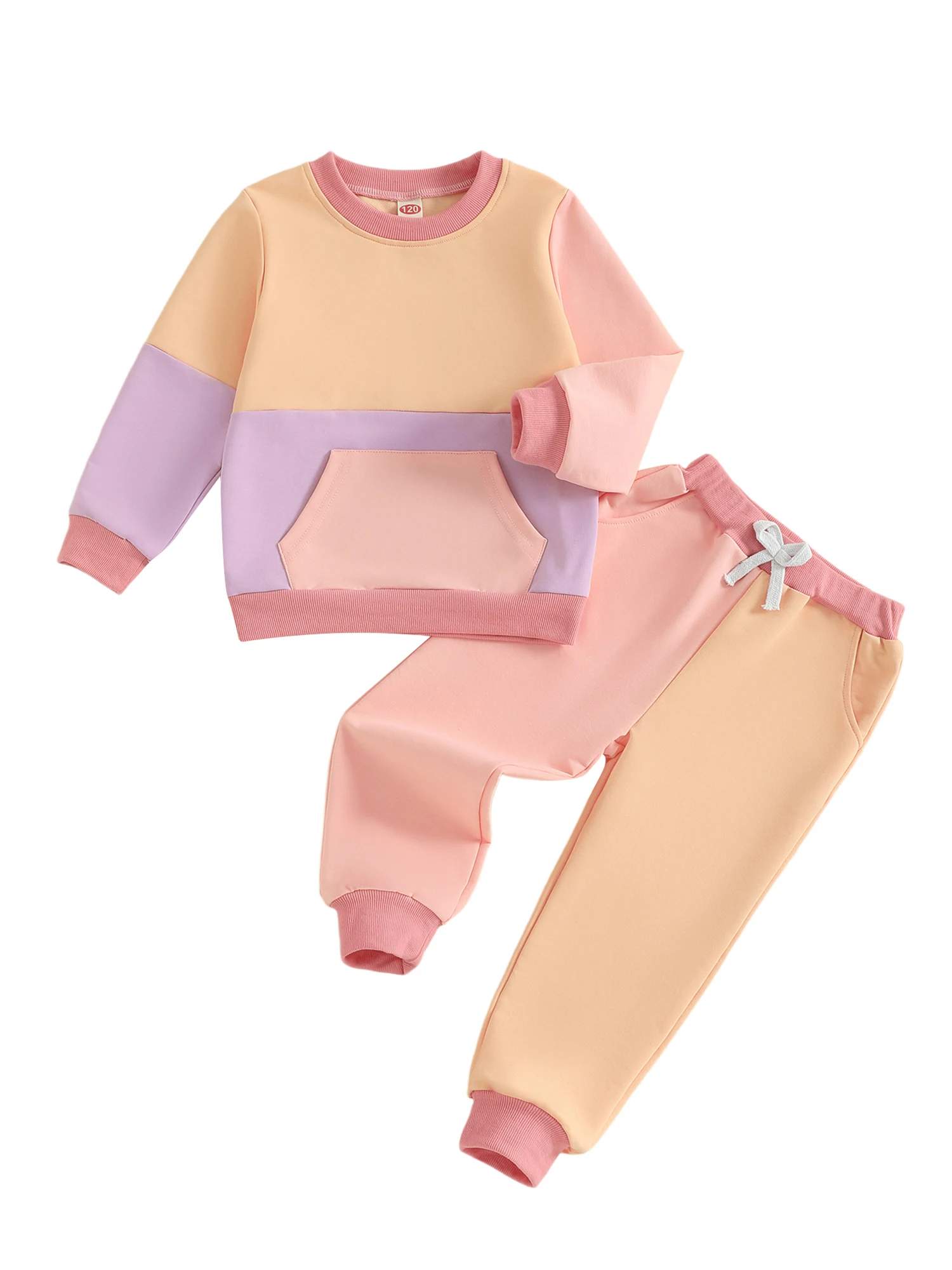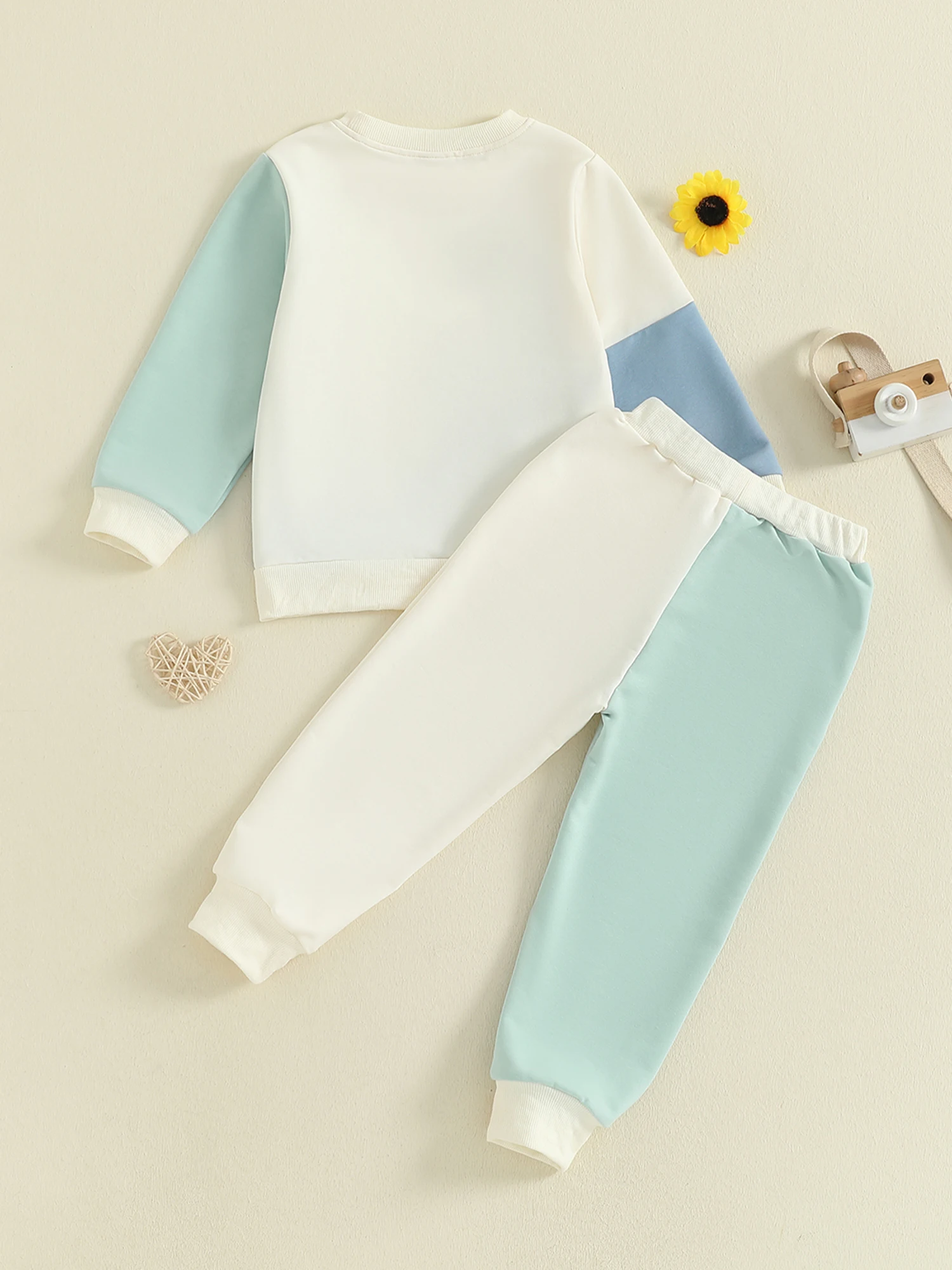 Toddler Baby Clothing Set Fashionable Contrast Color Long Sleeve Pullover with Pants 2 Pcs Fall Outfit