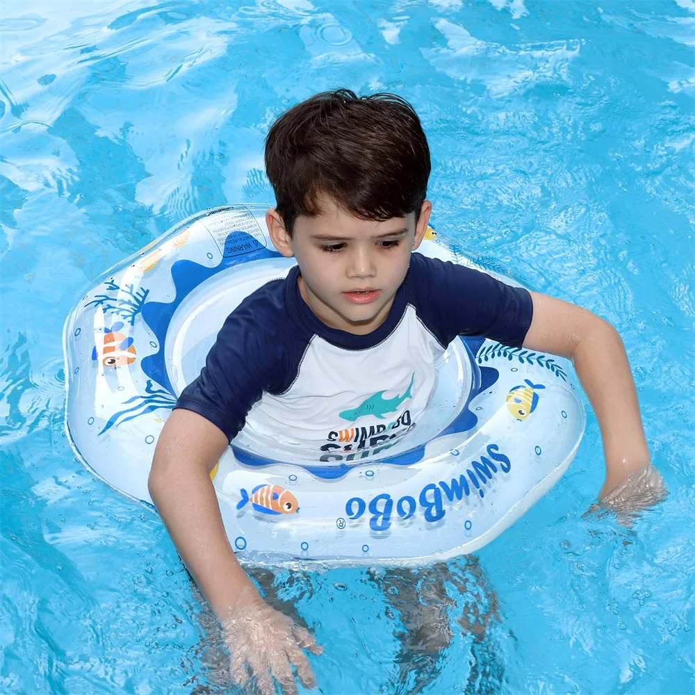 Swimbobo Cool Inflatable Swimming Seat Ring Water Toy Kids PVC White Chid Floats For Summer Portable Blue Ocean Baby Float Ring