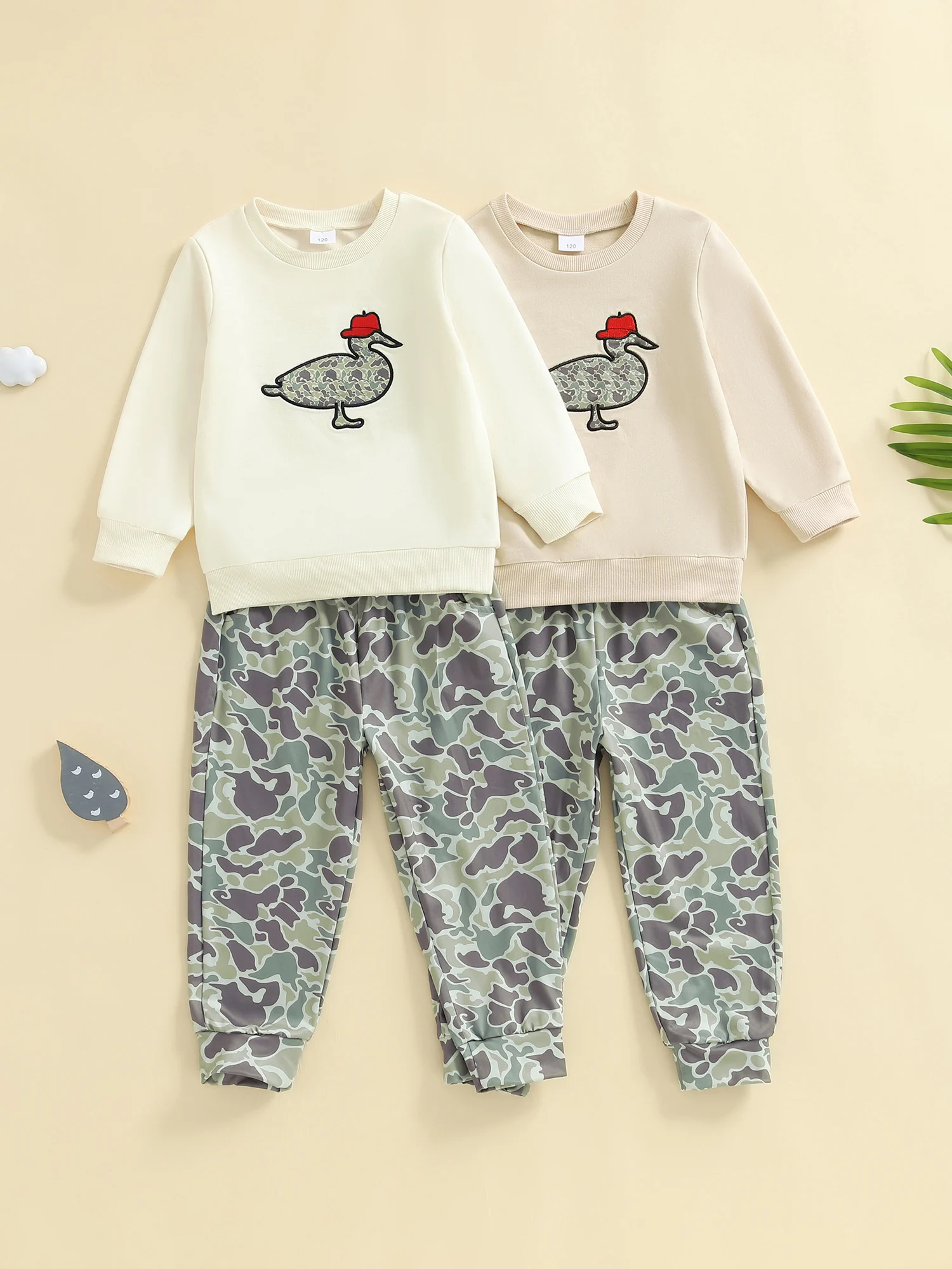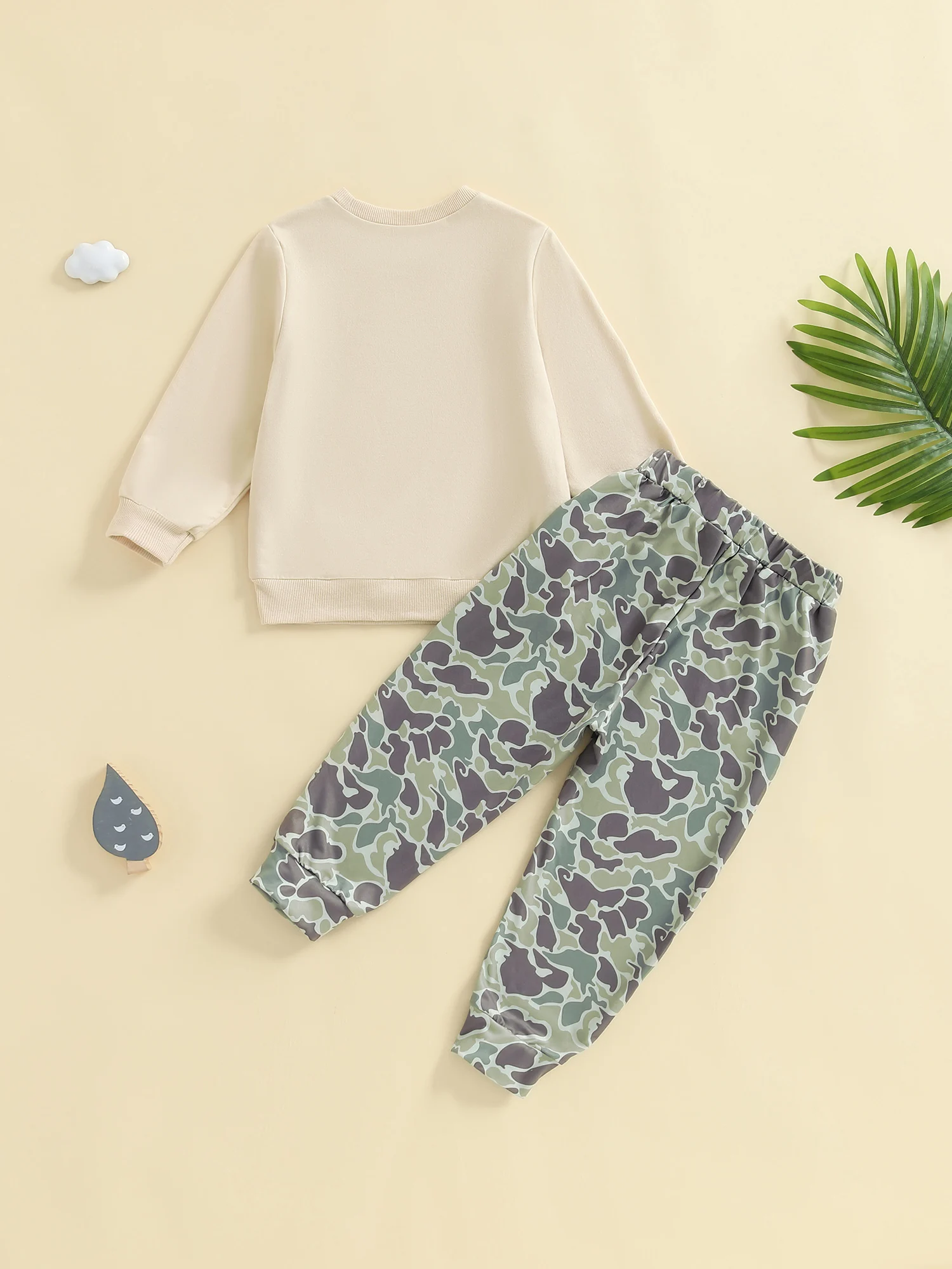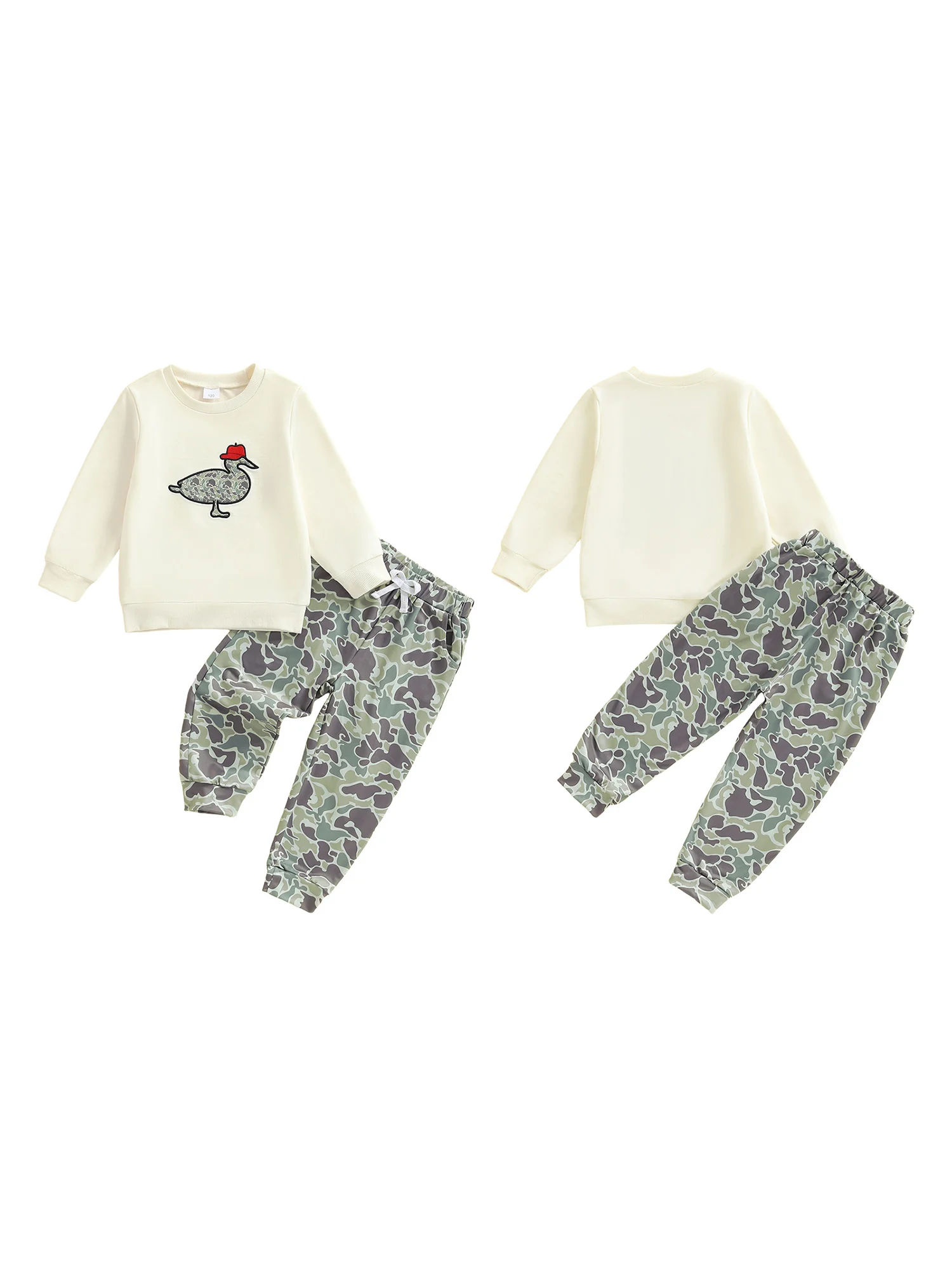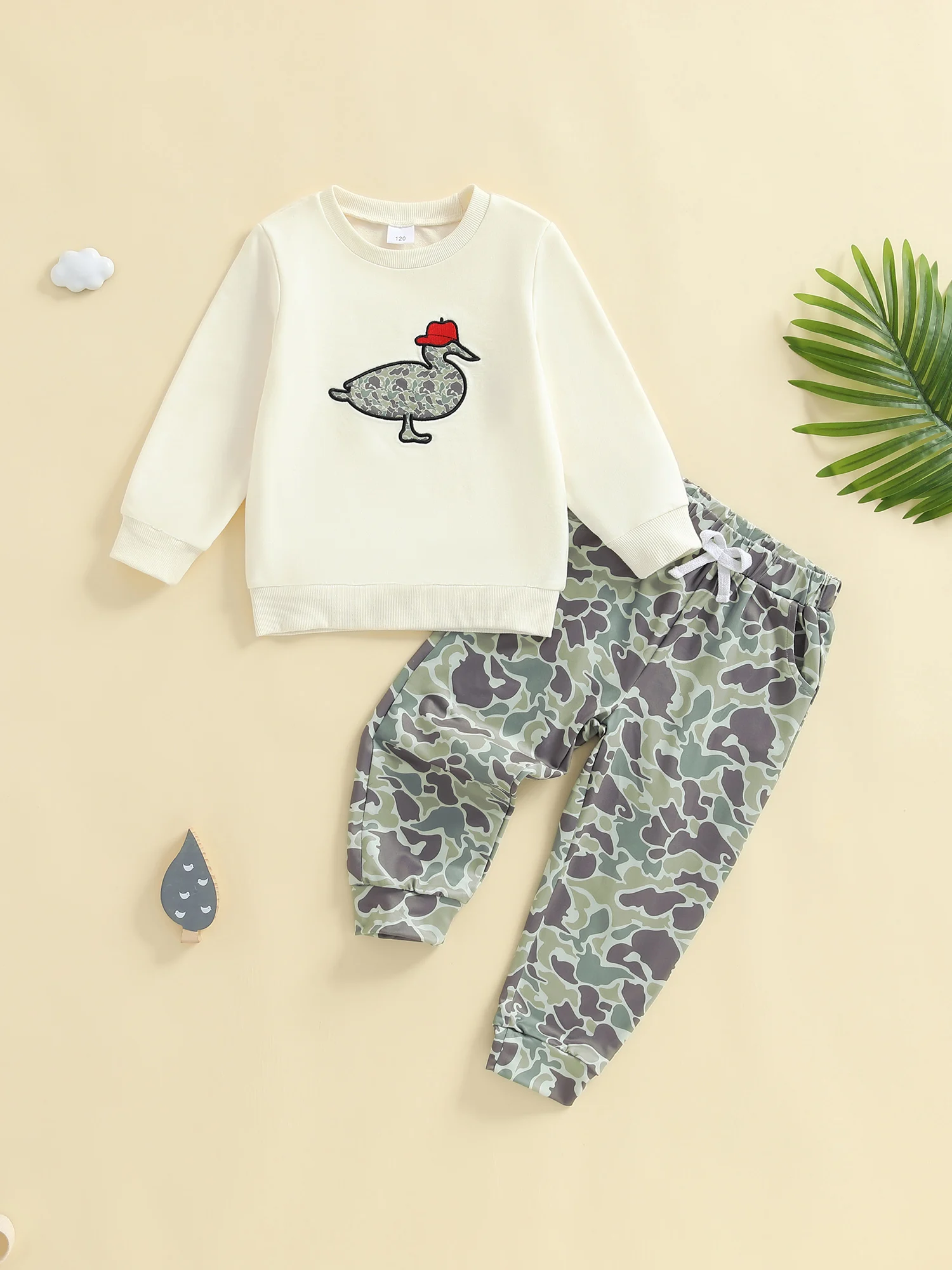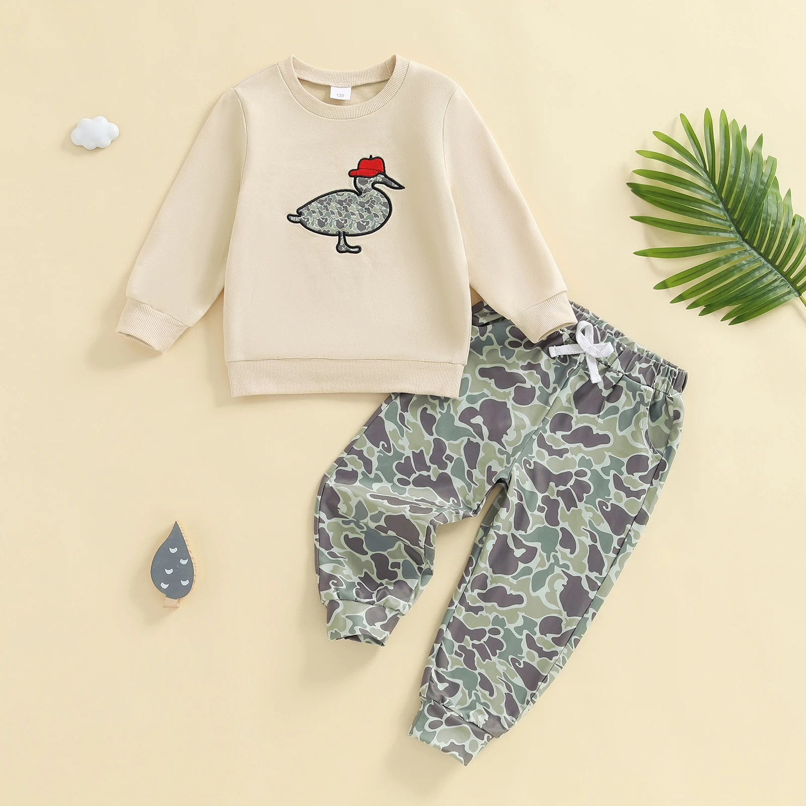 Baby Boy 2Pcs Fall Outfit Long Sleeve Truck Embroidery Sweatshirt + Pants Set Warm Clothes