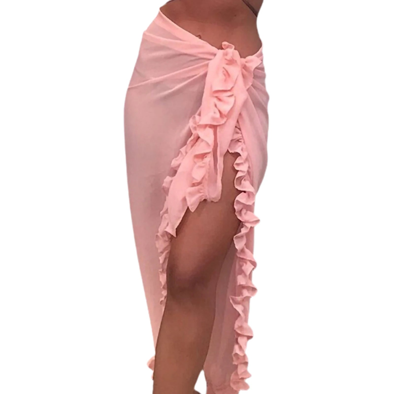 Women s Sunscreen Half Dress Ruffle Solid Color See Through Summer Beach Holiday Long Half Dress